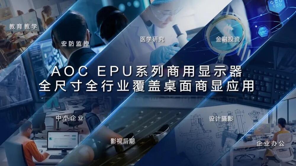 当前,企业数字化升级需求日益精细化,高精准度、高稳定性、智能化的商用显示设备已成为提升效率、优化协作的核心工具。AOC始终以用户需求为导向,通过旗下E/P/U系列商用显示器构建结构化产品矩阵,精准匹配教育教学、安防监控、医学研究、中小企业、金融投资、影视后期、设计摄影、企业办公八大行业领域的多样化需求,实现全场景精细化覆盖。
