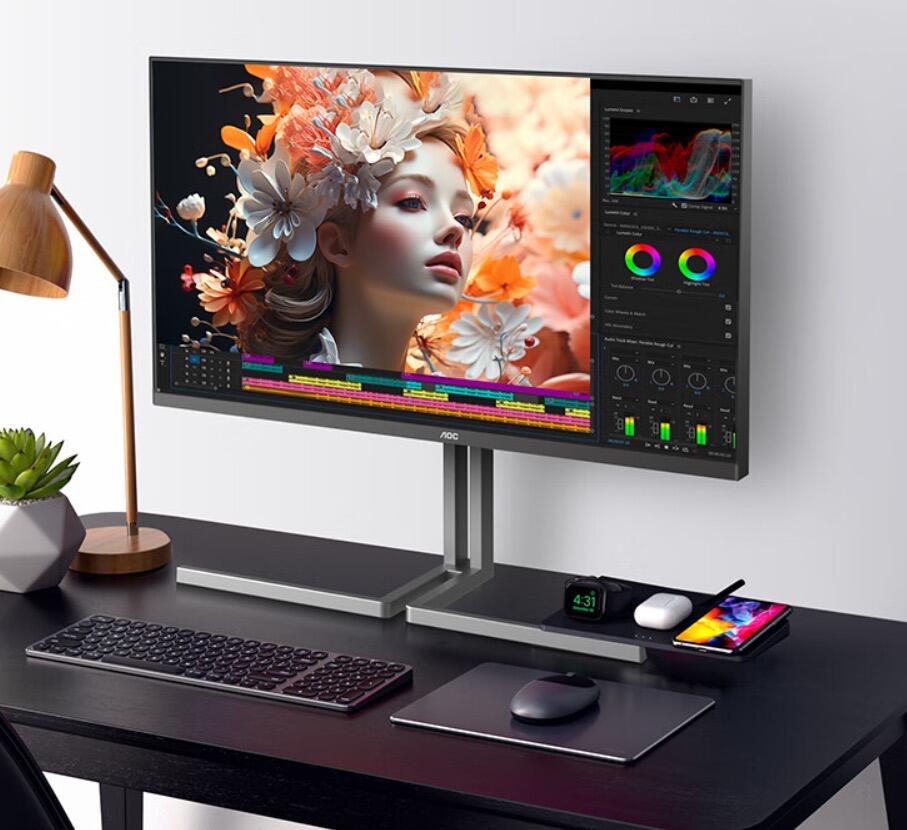 面向设计摄影、影视后期、高端商务办公等对色彩精度与设计美学有极致追求的场景,AOC U系列定制27英寸-32英寸大尺寸屏幕,搭载专业色准(ΔE<2)、98% DCI-P3 广色域等核心配置,成为设计师、内容创作者的优选装备,高效释放创意灵感。