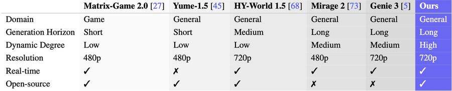 (LingBot-World在适用场景、生成时长、动态程度、分辨率等方面均处于业界顶尖水平)