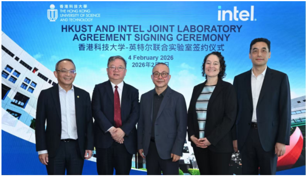 在香港科技大学首席副校长郭毅可教授、英特尔中国区董事长王稚聪先生及英特尔公司大学合作资深总监Gabriela Cruz Thompson女士的见证下,协议由香港科技大学副校长(研究及发展)郑光廷教授与英特尔中国研究院院长宋继强先生签署,标志着联合实验室的正式成立。
