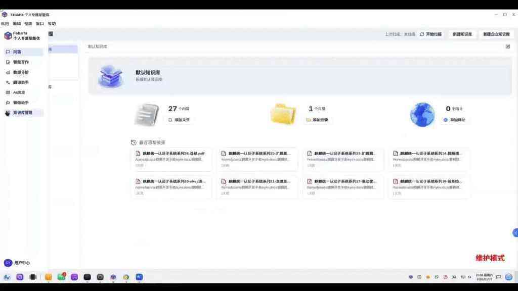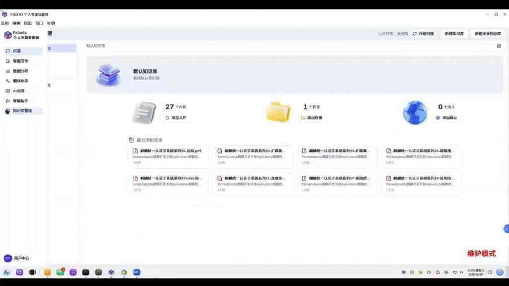 当然,在端云融合的麒麟AI子系统上,Fabarta个人专属智能体麒麟版也可以切换云端模式,实现其他智能功能,如智能写作、智能改写、数据分析等高频办公场景,以及AI应用、智能助手等创新AI体验:
