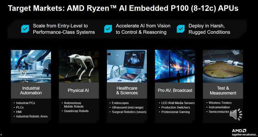 据悉,配备8至12颗核心的AMD锐龙AI嵌入式P100系列处理器现已提供样品,预计将于2026年7月量产出货。P100系列4至6核处理器目前也已提供样品,预计将于2026年第二季度量产。