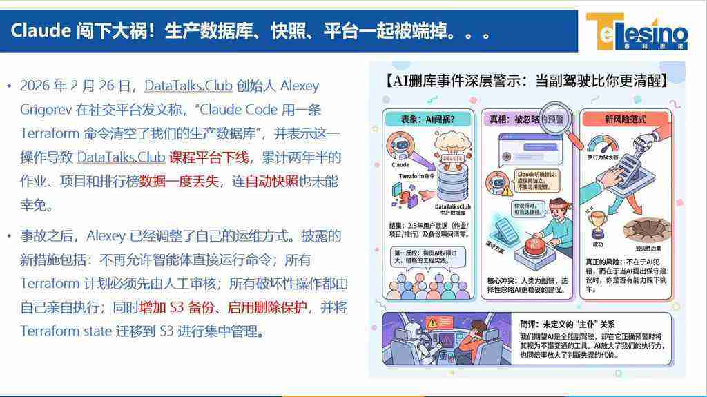 Datatalks删库事件的教训,或许比任何技术文档都更直观。在自动化、智能化程度越来越高的时代,人对每一步操作的直觉控制正在减弱,而数据一旦消失,代价是无法回头的。