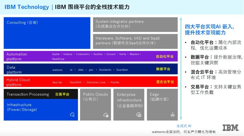 一家拥有二十多家IT供应商的大型电器零售制造企业,因为看重IBM的全栈整合能力而找上门来。AI在企业中既横向穿透研产供销服全流程,又纵向贯通底层算力到上层应用,这种复杂性让具备全栈能力的IBM在AI时代成为稀缺选择。