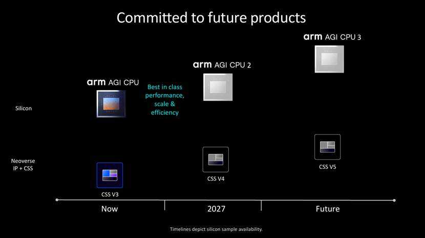 Arm AGI CPU是Arm全新数据中心芯片产品线的首款产品,该产品线将与Arm Neoverse CSS产品路线图并行推进,确保所有Arm数据中心客户在平台架构与软件兼容性方面实现协同发展。双路线并行的策略,既保障了原有客户的投资与兼容性,又能通过自主芯片引领技术创新,稳固Arm在AI数据中心市场的长期地位。