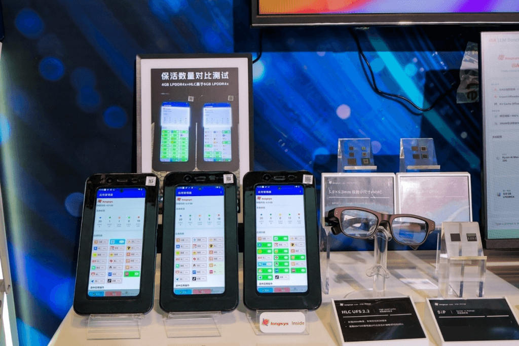 在嵌入式端,江波龙与紫光展锐联合开发,搭载紫光展锐芯片平台实测,4GB DDR搭配HLC技术后,20款App启动响应时间仅851ms,接近6GB/8GB DDR正常配置水平,且江波龙搭载14nm制程工艺WM7200主控的UFS 2.2产品,顺序读写最高可达1070MB/s、1000MB/s,随机读写IOPS分别最高可达240K、210K,超过行业主流水平,在保障流畅体验和器件使用寿命的前提下,有效降低终端DRAM容量需求、优化BOM成本。