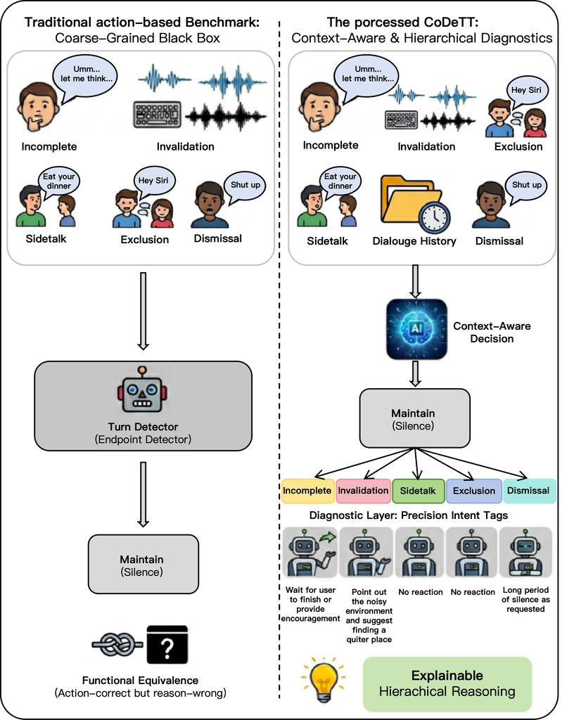 对全双工语音交互赛道: CoDeTT重新定义了什么叫”好的turn-taking”。从”接话时机对不对”到”决策理由对不对”,这是评测范式的一次本质升级。