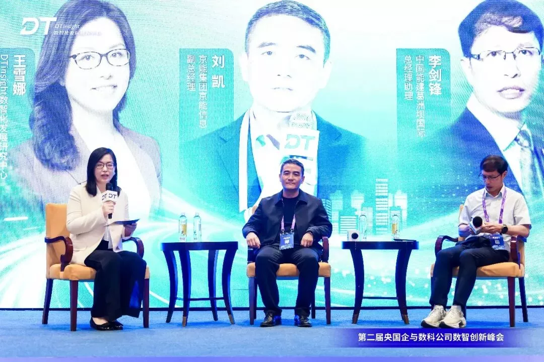 第二场圆桌对话,京能集团京能信息副总经理刘凯、中能集团葛洲坝国际总经理助理李剑锋,与话题引领人DTinsight数智化发展研究中心执行主席王雪娜,围绕“数智与业务协同之道”的主题进行了探讨交流。